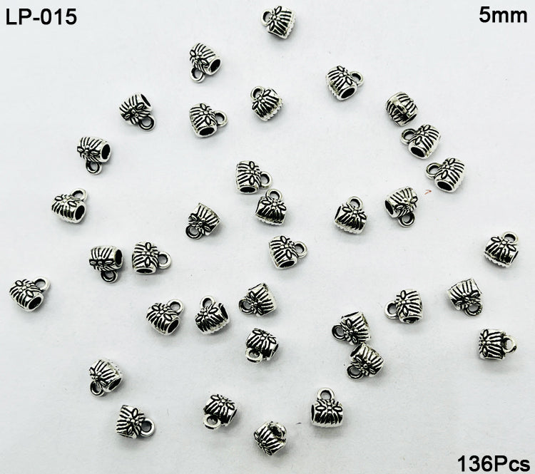 136-piece set of 5mm Antique Silver Pendant Bails – the perfect connectors for all your DIY jewelry projects. These charm holders are essential for securely attaching pendants, beads, and charms to your custom-made necklaces, bracelets, earrings, and more.