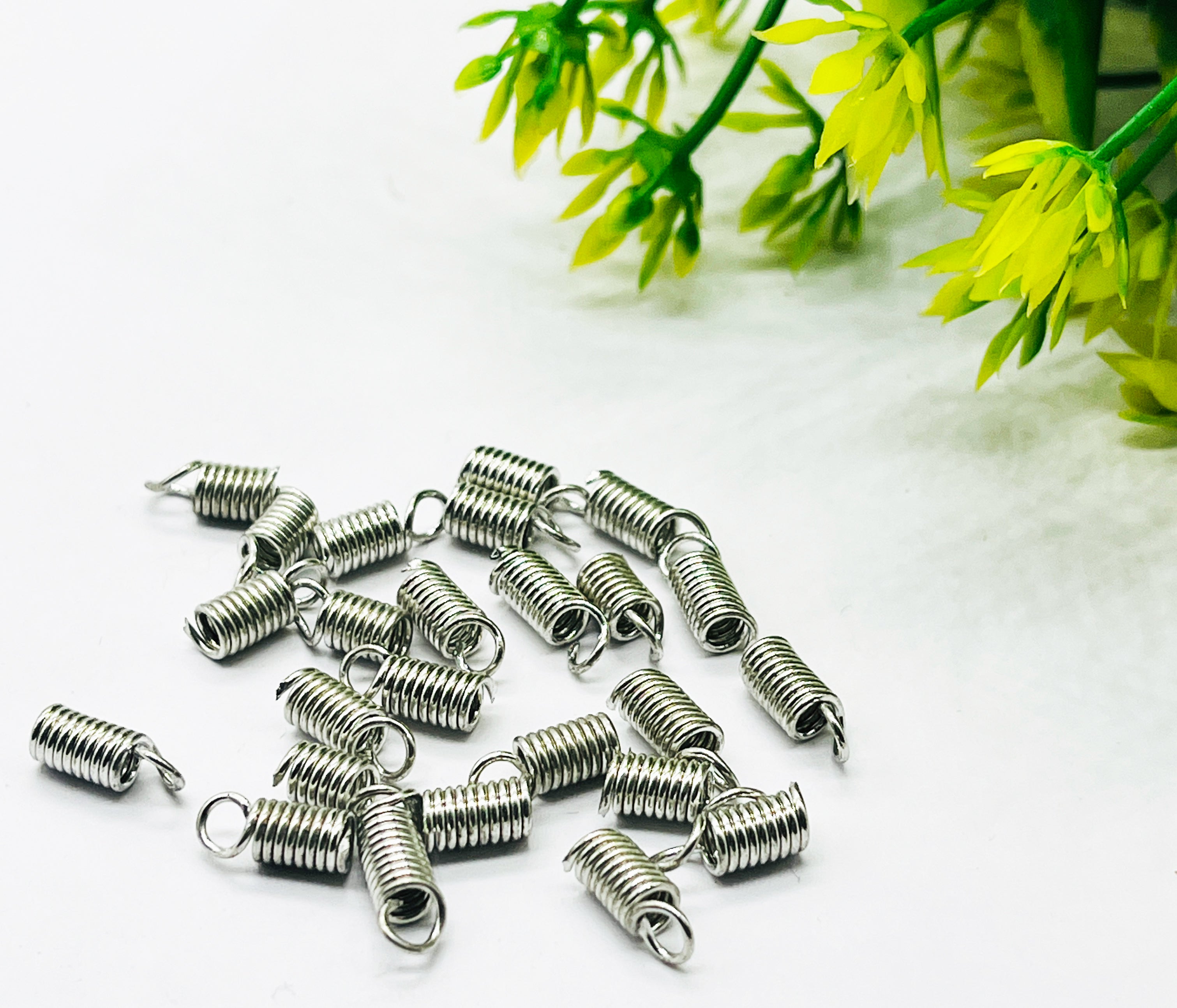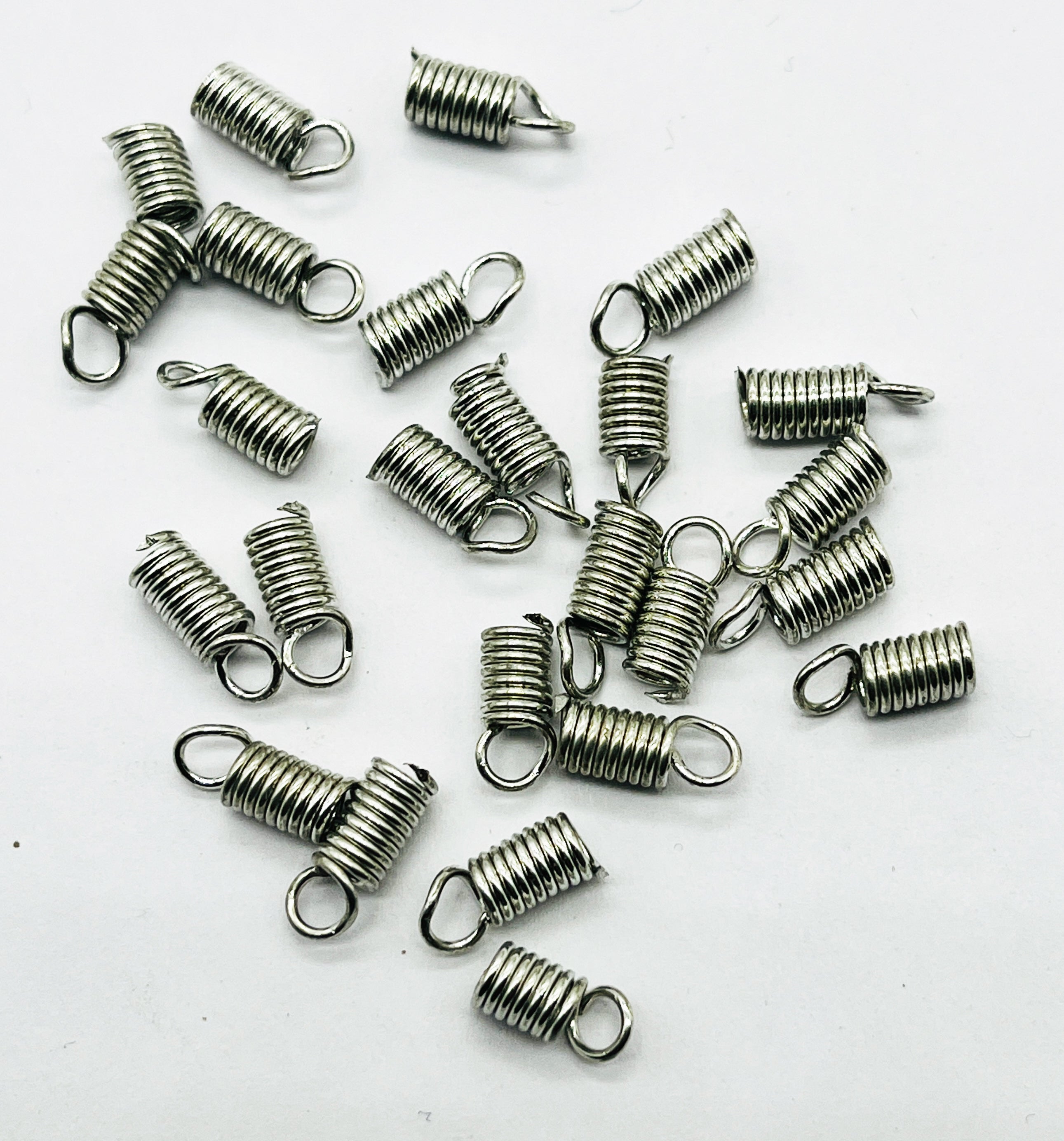 25Pcs 4mm Silver Spring Wire End Caps with Loops, perfect for all types of DIY jewelry making. These durable and easy-to-use cord end caps are designed to give your bracelets, necklaces, and anklets a clean, professional look.
