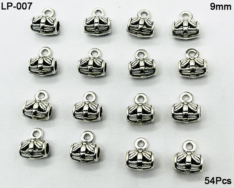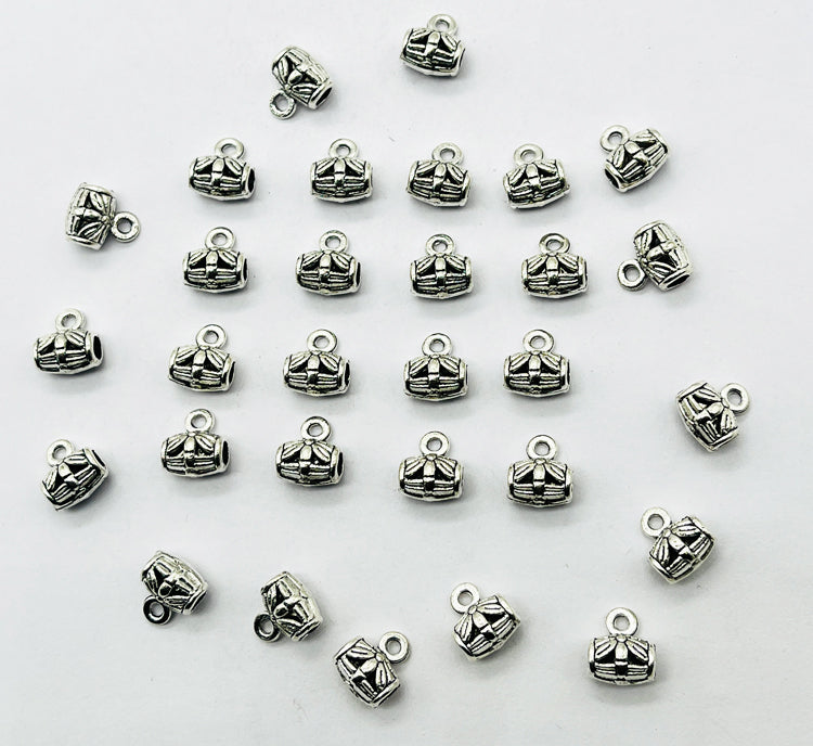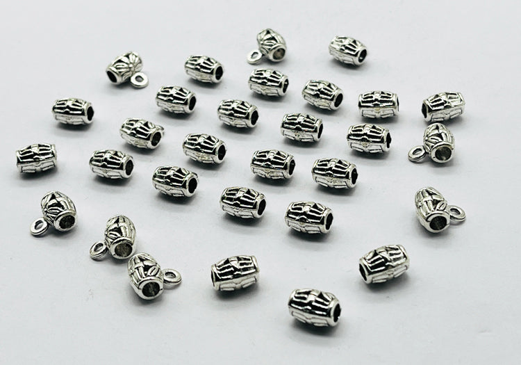 54Pcs 9mm Antique Silver Pendant Bails featuring a beautifully detailed floral barrel design. Crafted from durable, lead-free alloy, these connector beads are perfect for attaching pendants, charms, or dangles to necklaces, bracelets, earrings, and anklets.