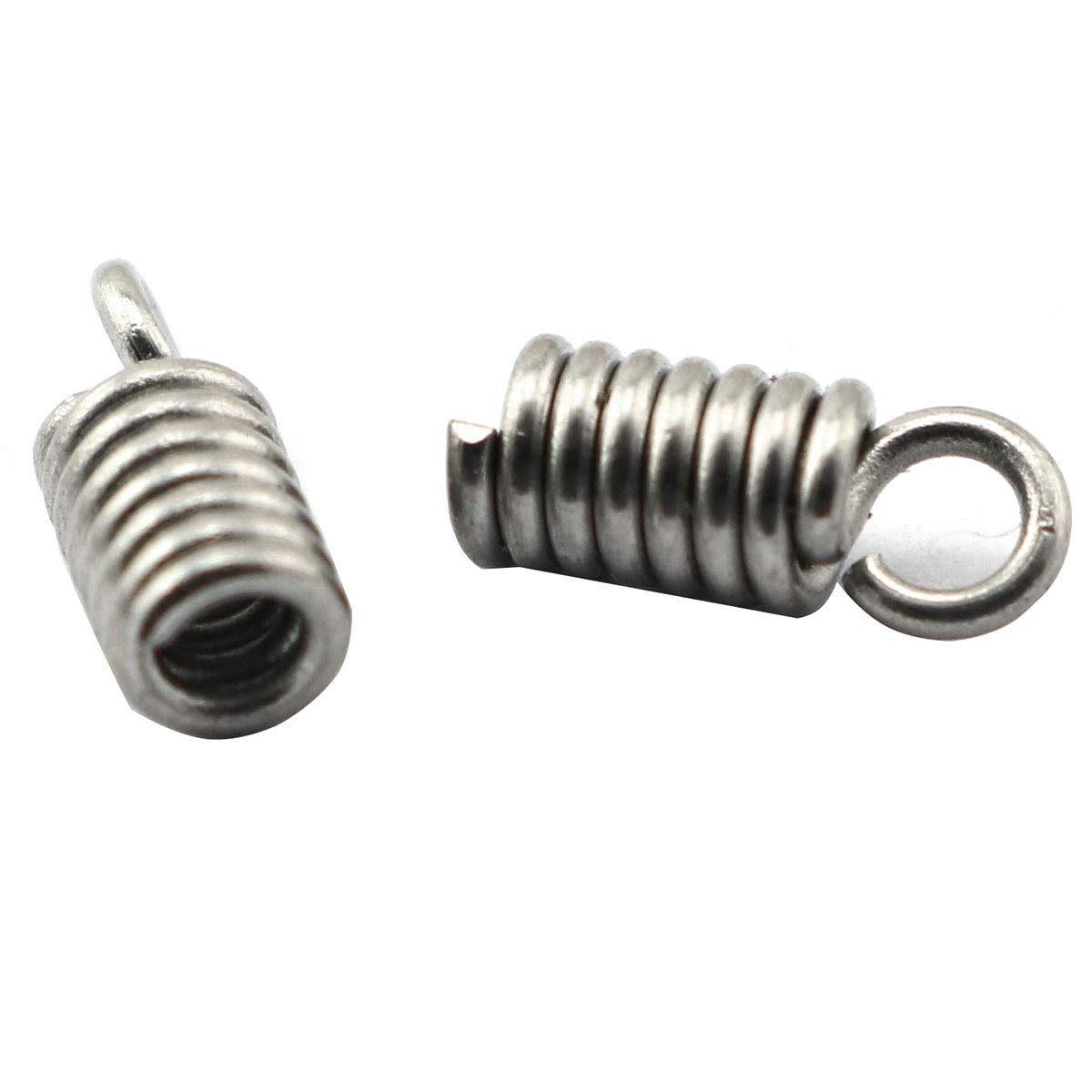 25Pcs Silver Spring Wire End Caps with Loops – 5mm Cord Ends made specifically for DIY jewelry making, necklace finishing, and bracelet closures. Crafted from durable metal with a sleek silver finish, these end caps are designed to grip cords securely and add a professional touch to your handmade jewelry.