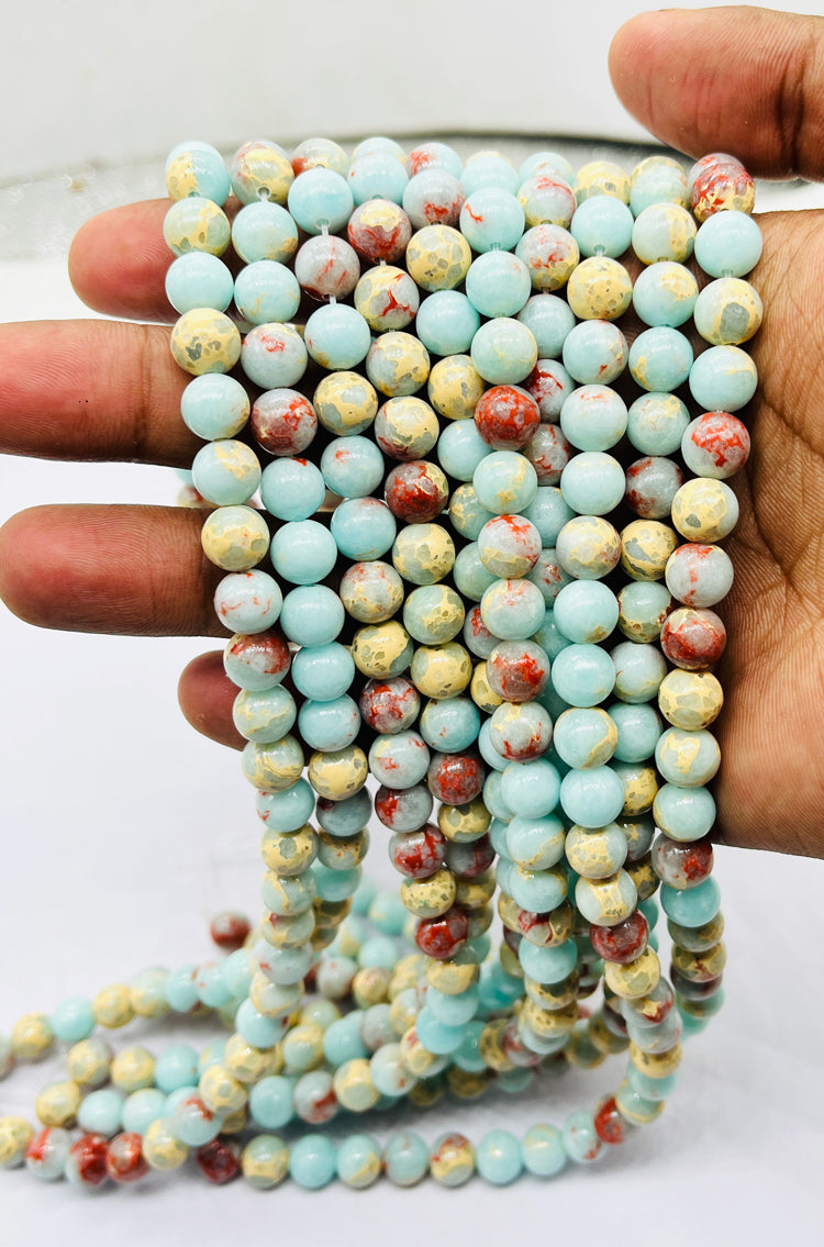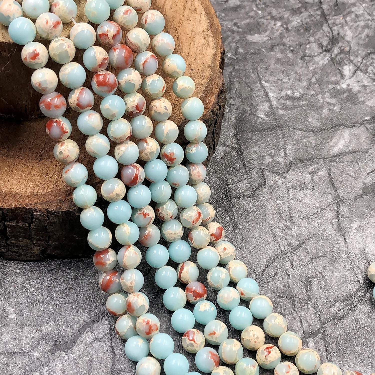 48Pcs 8mm Natural Light Blue Copper Turquoise Round Gemstone Beads. Known for their vibrant light blue tone and shimmering copper veins, these beads add a rich, artistic touch to bracelets, necklaces, earrings, anklets, and other creative projects.