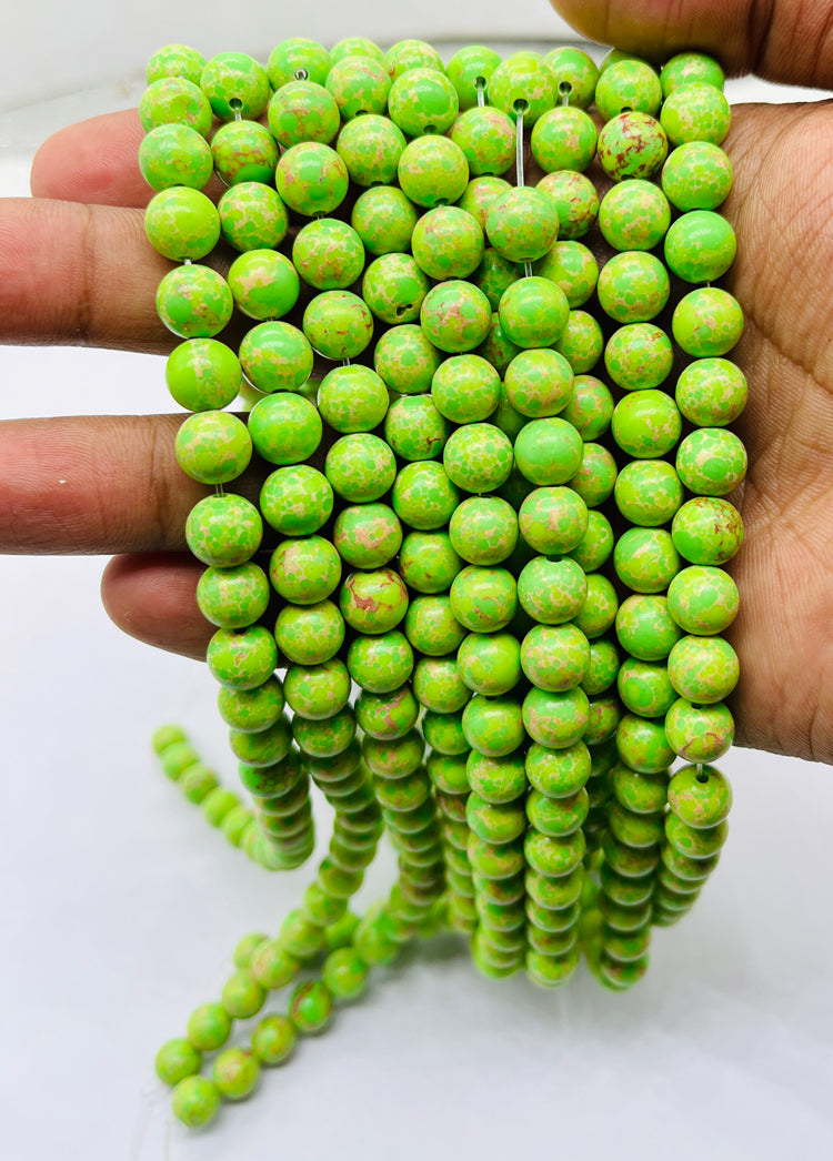 48Pcs 8mm Natural Green Copper Turquoise Round Gemstone Beads. Featuring a rich green hue accented with shimmering copper veins, these beads bring a luxurious, earthy touch to bracelets, necklaces, earrings, anklets, and more.
