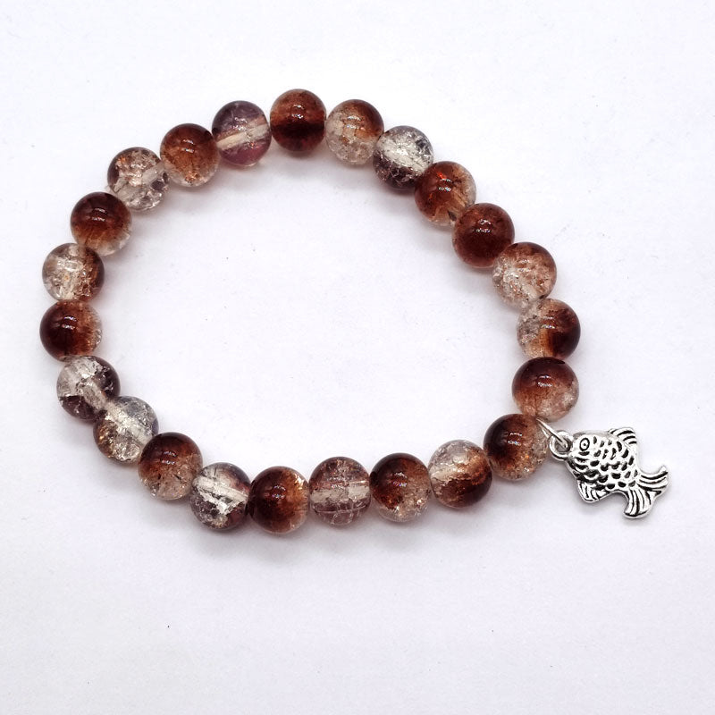 Add a touch of elegance to your look with this Brown Crackle Charms 8MM Bracelet. Featuring vibrant crackle glass beads and delicate silver-tone charms, this bracelet combines charm and color in a stylish, eye-catching design—perfect for everyday wear or special occasions.