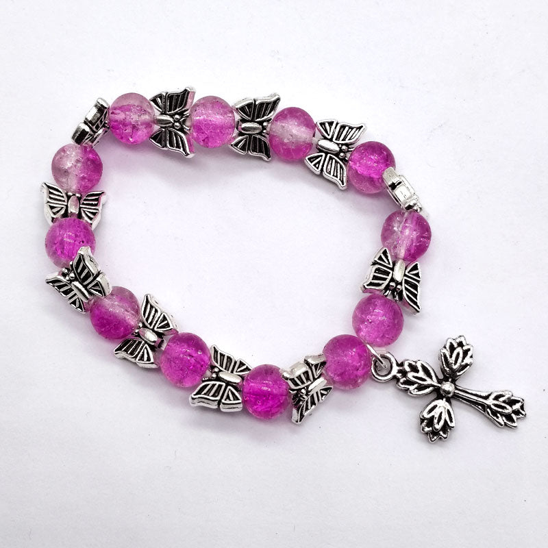 Butterfly Pink Crackle Charms 8MM Bracelet - (CB-015)