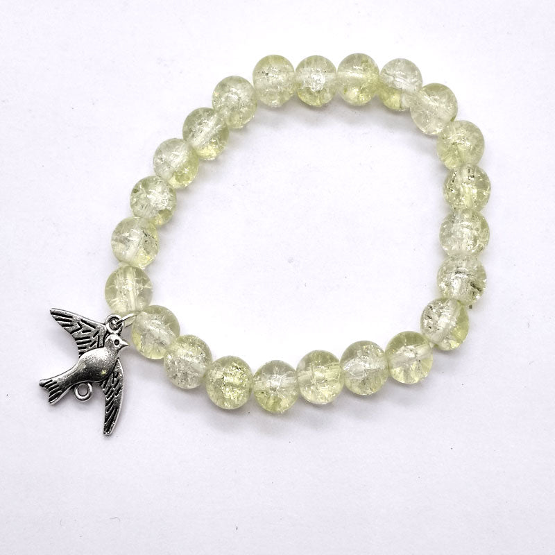 Add a touch of elegance to your look with this Crackle Charms 8MM Bracelet. Featuring vibrant crackle glass beads and delicate silver-tone charms, this bracelet combines charm and color in a stylish, eye-catching design—perfect for everyday wear or special occasions.