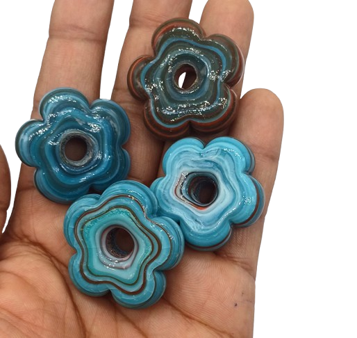 FLOWER SHAPED FURNACE GLASS BEADS- 30X10 MM PER PACKET OF 4 PCS- (FL-001)