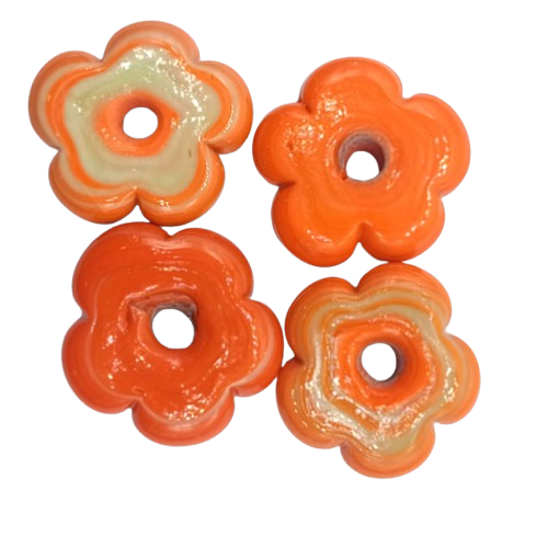 FLOWER SHAPED FURNACE GLASS BEADS- 30X10 MM PER PACKET OF 4 PCS- (FL-003)