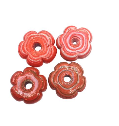 FLOWER SHAPED FURNACE GLASS BEADS- 30X10 MM PER PACKET OF 4 PCS- (FL-007)