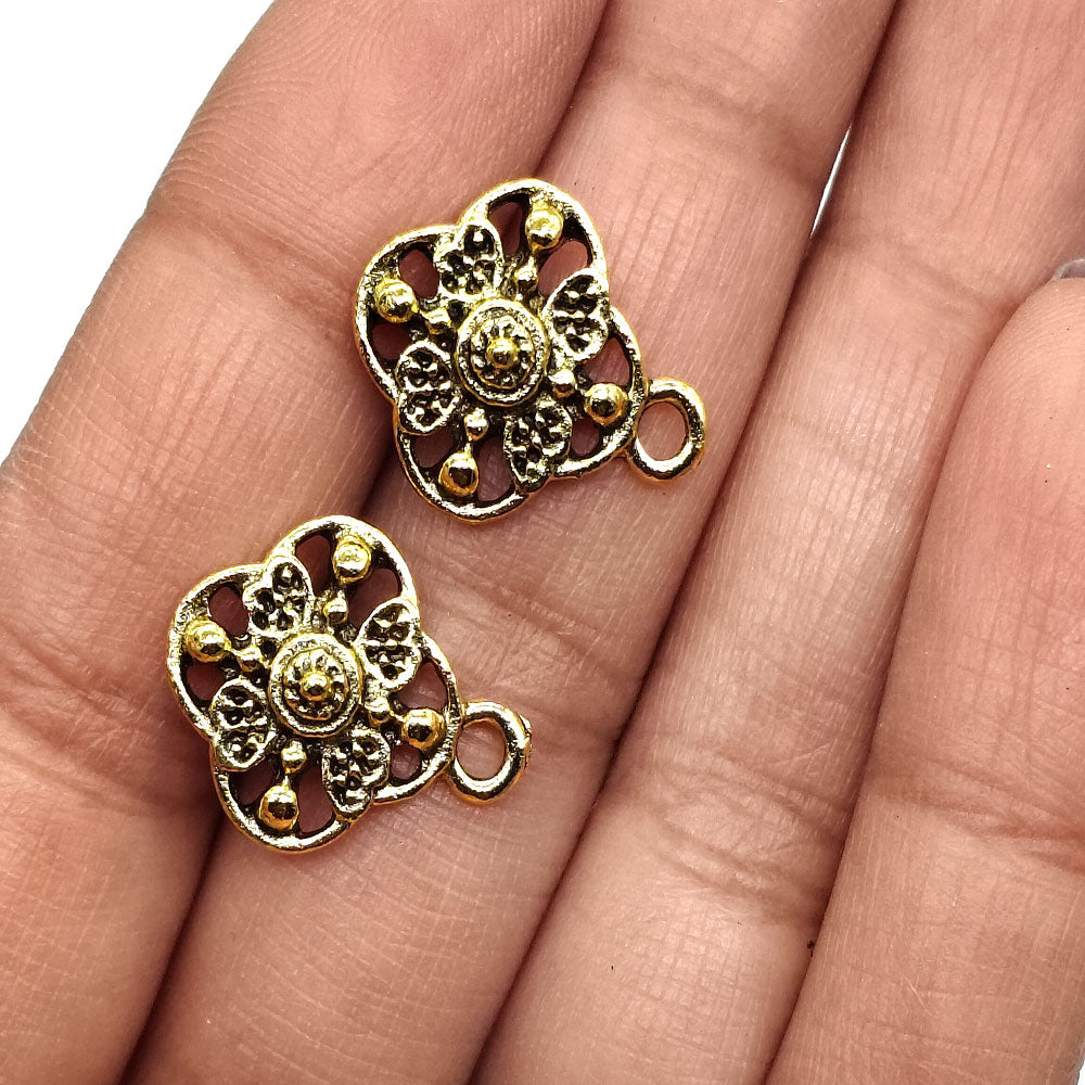 German Golden Metal Studs Earrings (Gold) smooth Finish use for jewelry Making Per Packet of 6 pair-(GTD-009)