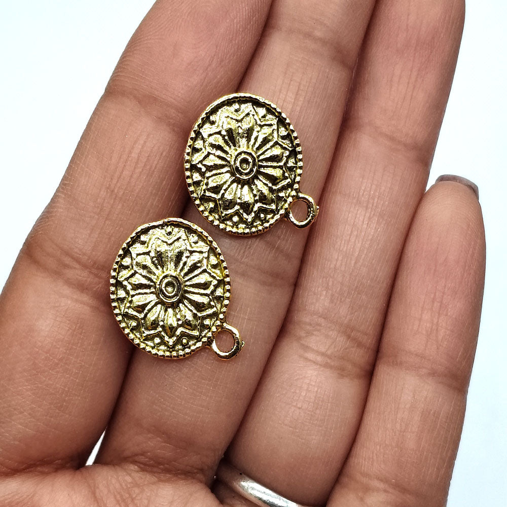 German Golden Metal Studs Earrings (Gold) smooth Finish use for jewelry Making Per Packet of 6 pair-(GTD-035)
