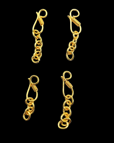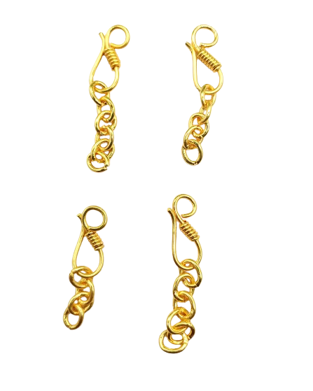 Gold Polished S-Hook Clasps with Chain Extenders. This pack of 10 premium jewelry findings is perfect for creating secure and stylish closures for necklaces, bracelets, anklets, and other DIY jewelry projects. Each S-hook clasp features a smooth gold-polished finish and comes attached with a short extender chain, offering both functionality and flair.