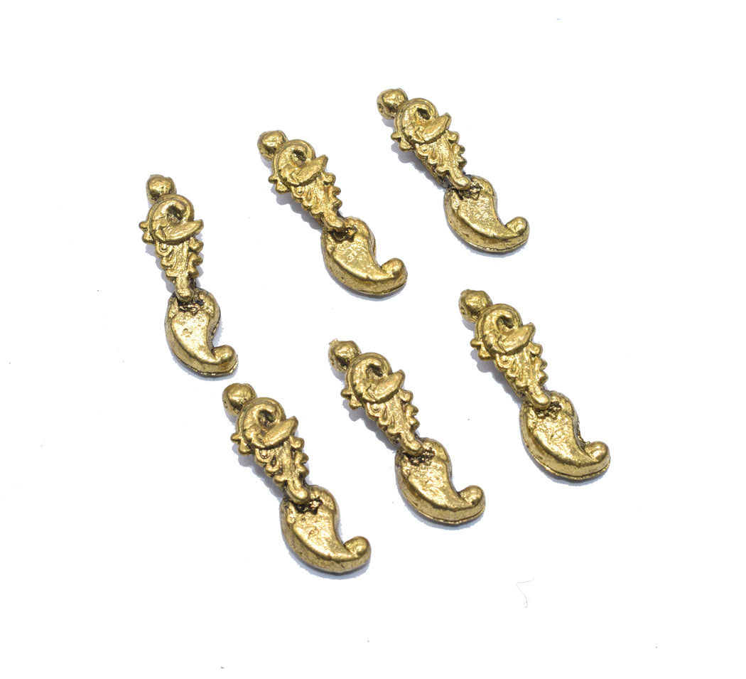The Golden Kholapuri Beads 20MM from Beadwaala are intricately designed metal beads that embody the rich cultural heritage of Maharashtra. Inspired by traditional Kolhapuri jewelry, these beads feature detailed oxidized silver patterns, making them ideal for creating statement pieces like necklaces, earrings, or bracelets. With a diameter of 28mm, they offer a bold presence in any jewelry design.