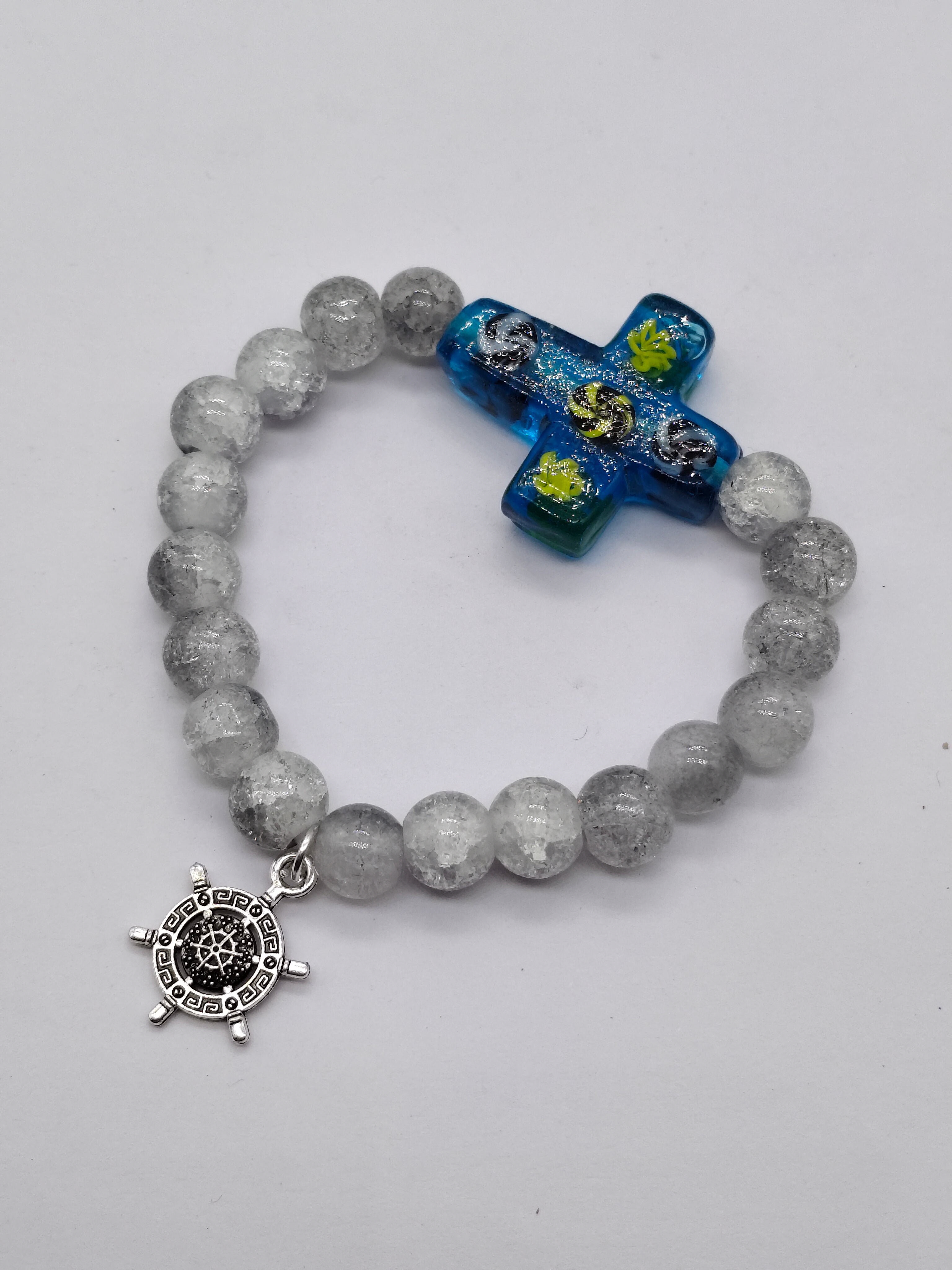 Add a touch of elegance to your look with this GREY Crackle Charms 8MM Bracelet. Featuring vibrant crackle glass beads and delicate silver-tone charms, this bracelet combines charm and color in a stylish, eye-catching design—perfect for everyday wear or special occasions.