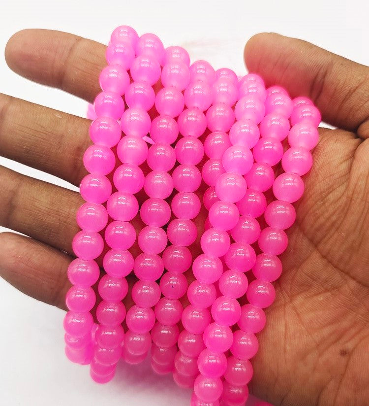PINK JELLY GLASS BEADS 8MM- (PER String OF 108 PCS) - (GJB-001) .