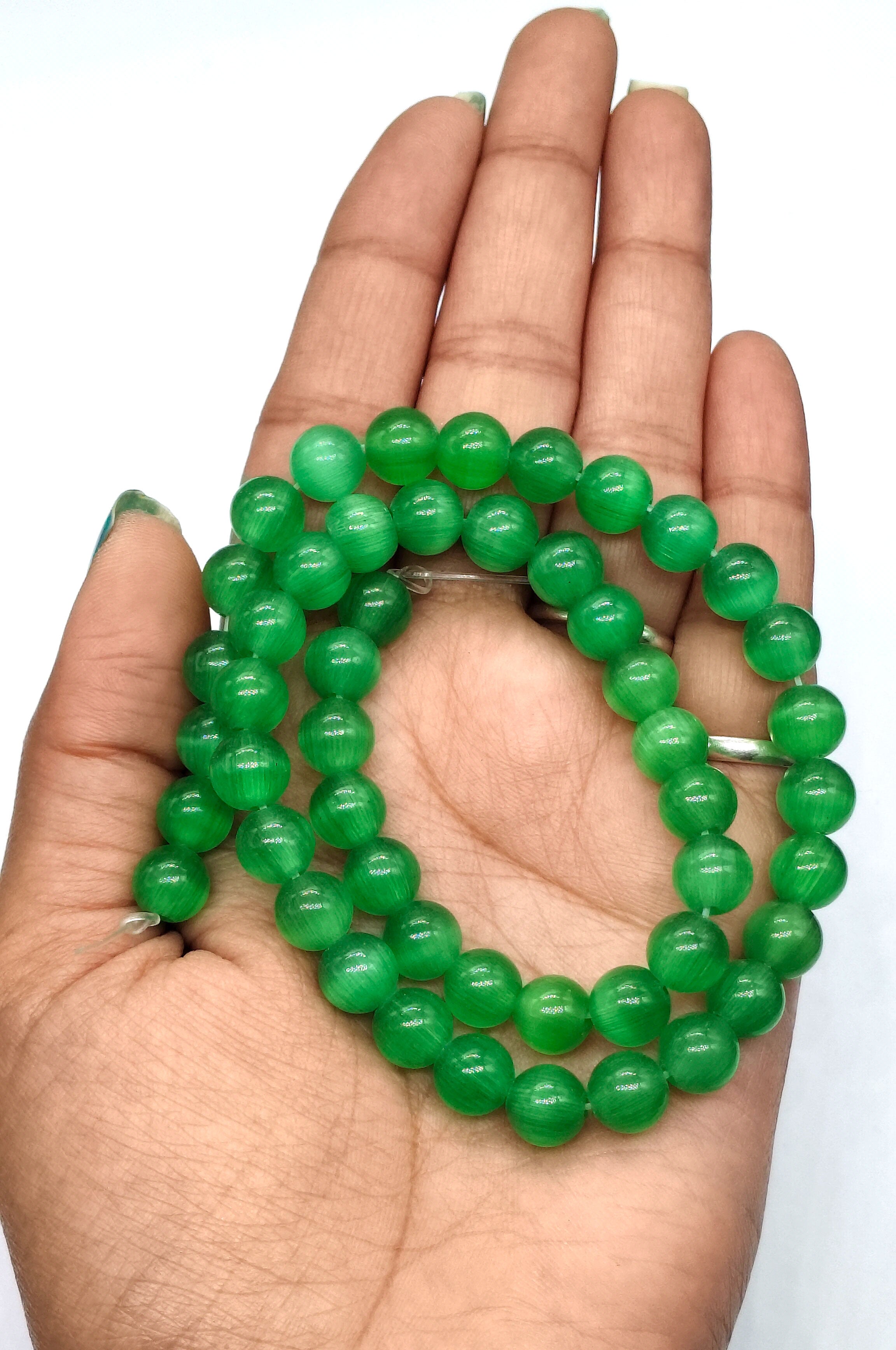 Monalisa (Cats Eye) Natural Stone Beads for Making Jewelry, per String of 50 pcs 8MM-( MLSB-004)