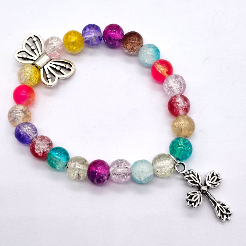 Multi colour Crackle Charms 8MM Bracelet - (CB-005)