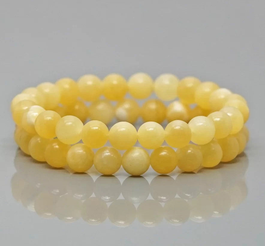 Natural Calcite 8mm Smooth Round AA Grade Gemstone Beads Stretch Bracelet highlights softly polished calcite beads with gentle, natural tones and a smooth round finish. Made with carefully selected AA Grade gemstones and strung on a durable stretch cord, this bracelet offers a comfortable fit and understated elegance. Its clean, natural look makes it perfect for everyday wear or layering with other gemstone pieces.