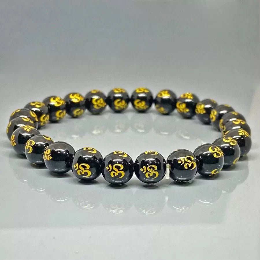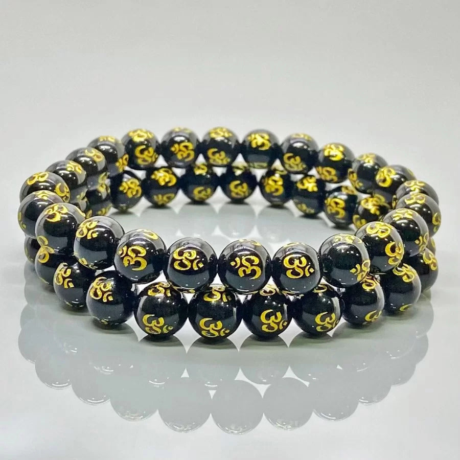 A sleek stretch bracelet featuring AAA grade 8mm smooth round printed Black Onyx beads with a deep, glossy black finish. Designed for comfort and easy wear, this versatile bracelet is perfect for everyday use or stacking with other styles