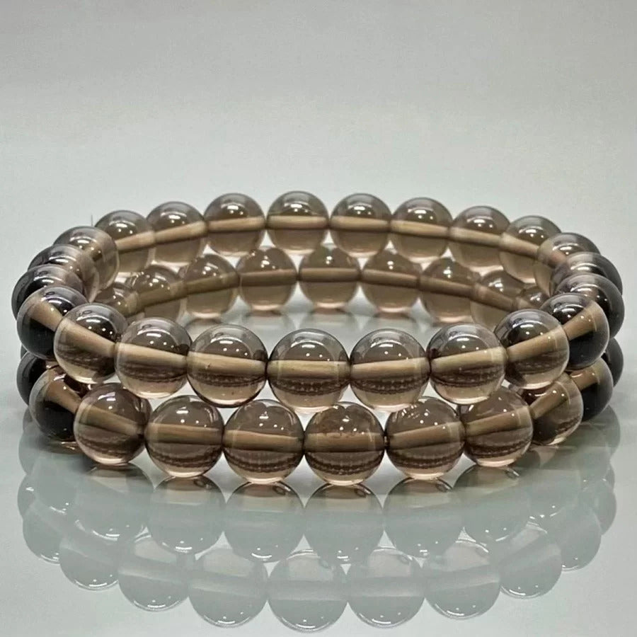 Natural Smoky Quartz 8mm Smooth Round AAA Grade Gemstone Beads Stretch Bracelet, featuring smooth polished round beads in rich smoky brown tones with natural clarity. Crafted from high-quality smoky quartz gemstones, this stretch bracelet offers a comfortable fit and a refined, earthy elegance perfect for everyday wear or layering
