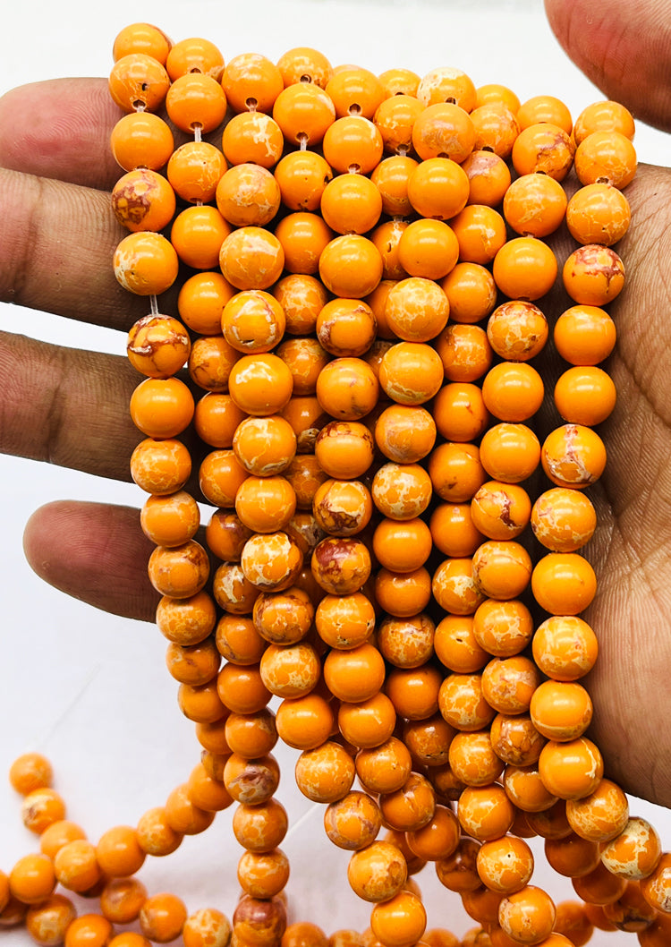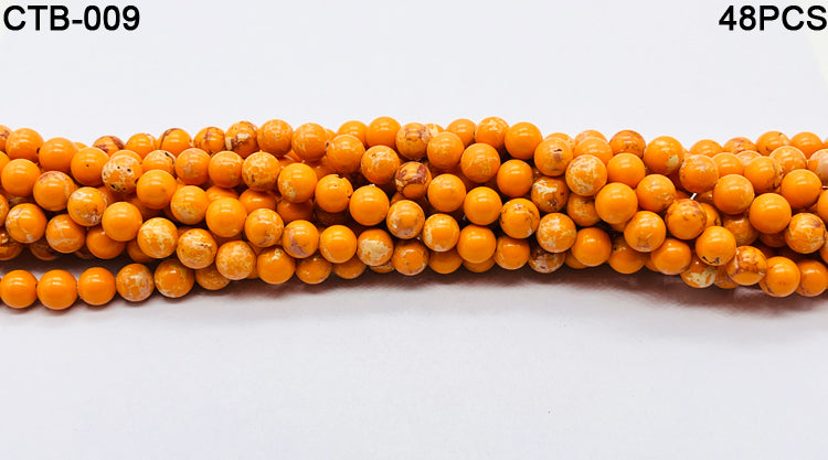Natural Yellow Copper Turquoise Gemstone Beads. Each pack contains 48 premium-quality, 8mm round plain beads, expertly crafted from authentic gemstone for durability and elegance. The bright yellow tone, enhanced by the natural copper matrix, brings a warm, luxurious look to any creation.