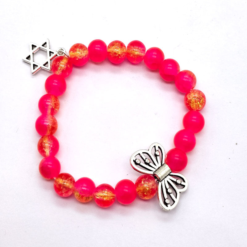 Pink Crackle Charms 8MM Bracelet - (CB-014)