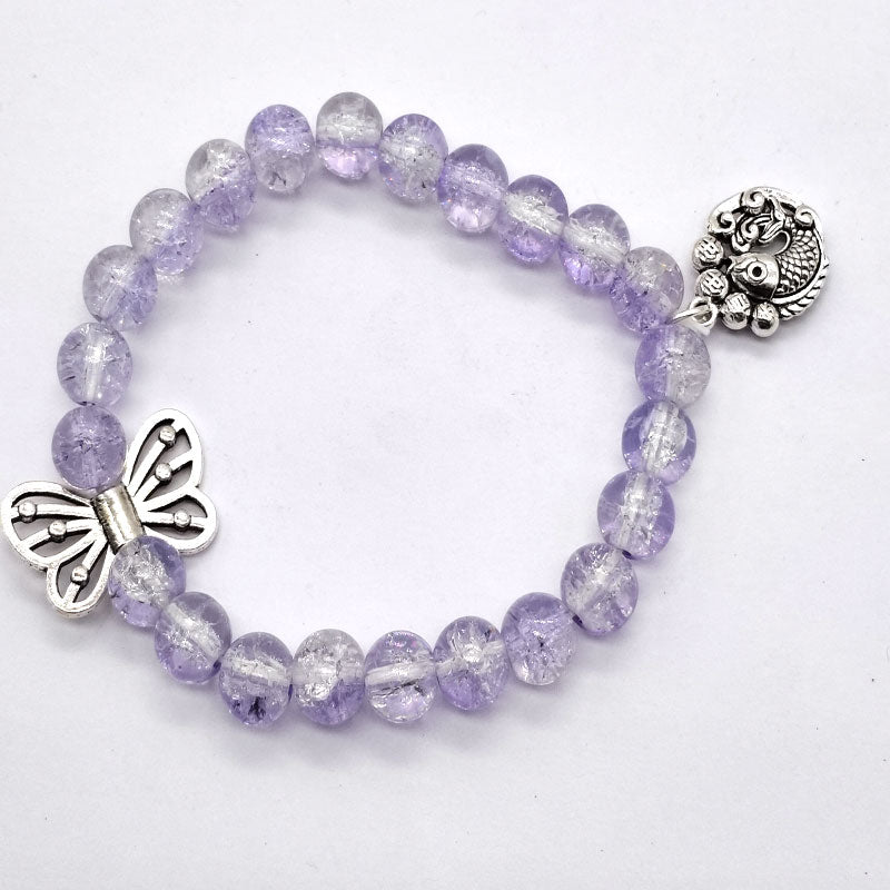 Purple Crackle Charms 8MM Bracelet - (CB-013)