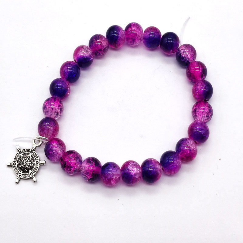 Add a touch of elegance to your look with this Purple Crackle Charms 8MM Bracelet. Featuring vibrant crackle glass beads and delicate silver-tone charms, this bracelet combines charm and color in a stylish, eye-catching design—perfect for everyday wear or special occasions.