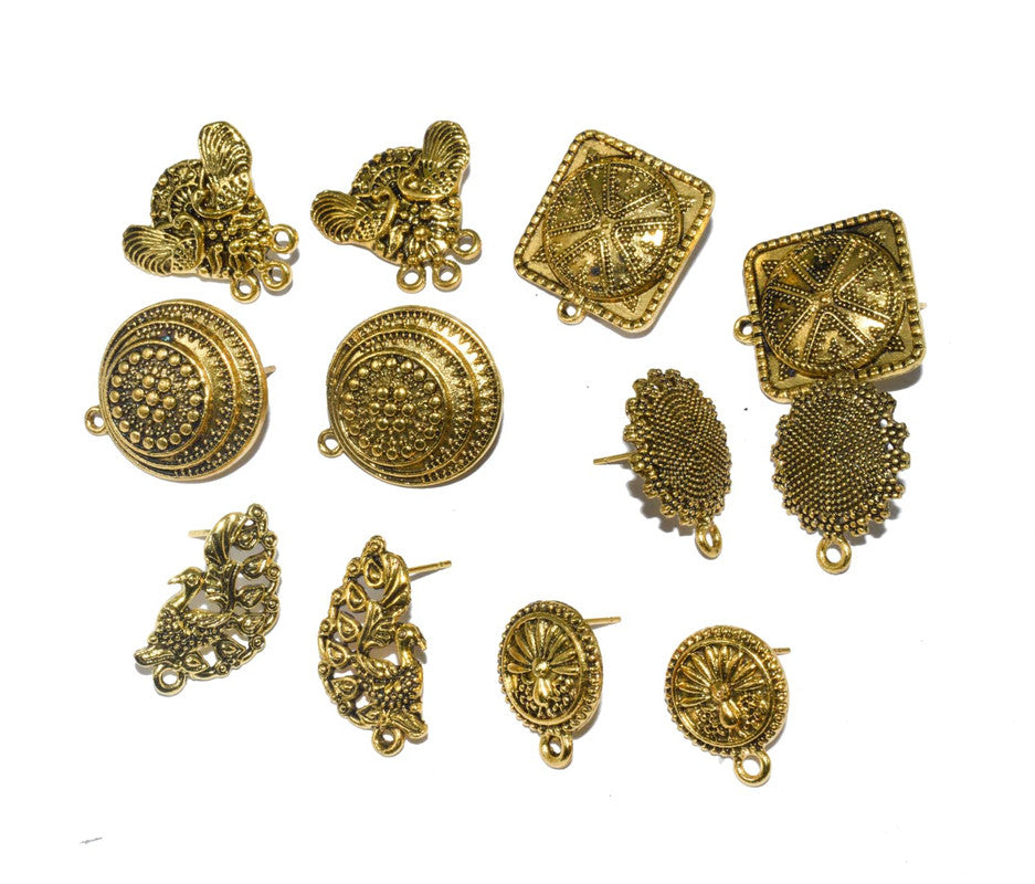 Random Design Metal Antique Golden Studs Earrings Making Combo Pack of 12 Pair