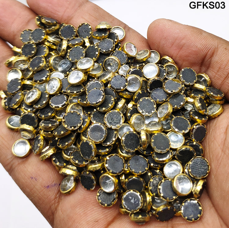 5MM Kundan stones are premium-quality, flat-back embellishments designed to add a touch of elegance to your crafts and jewelry projects. These stones feature a gold-tone foil setting that enhances their brilliance and offers a traditional Indian aesthetic. Ideal for embroidery, aari work, saree borders, bangles, and other decorative applications, they provide a refined finish to your creations.