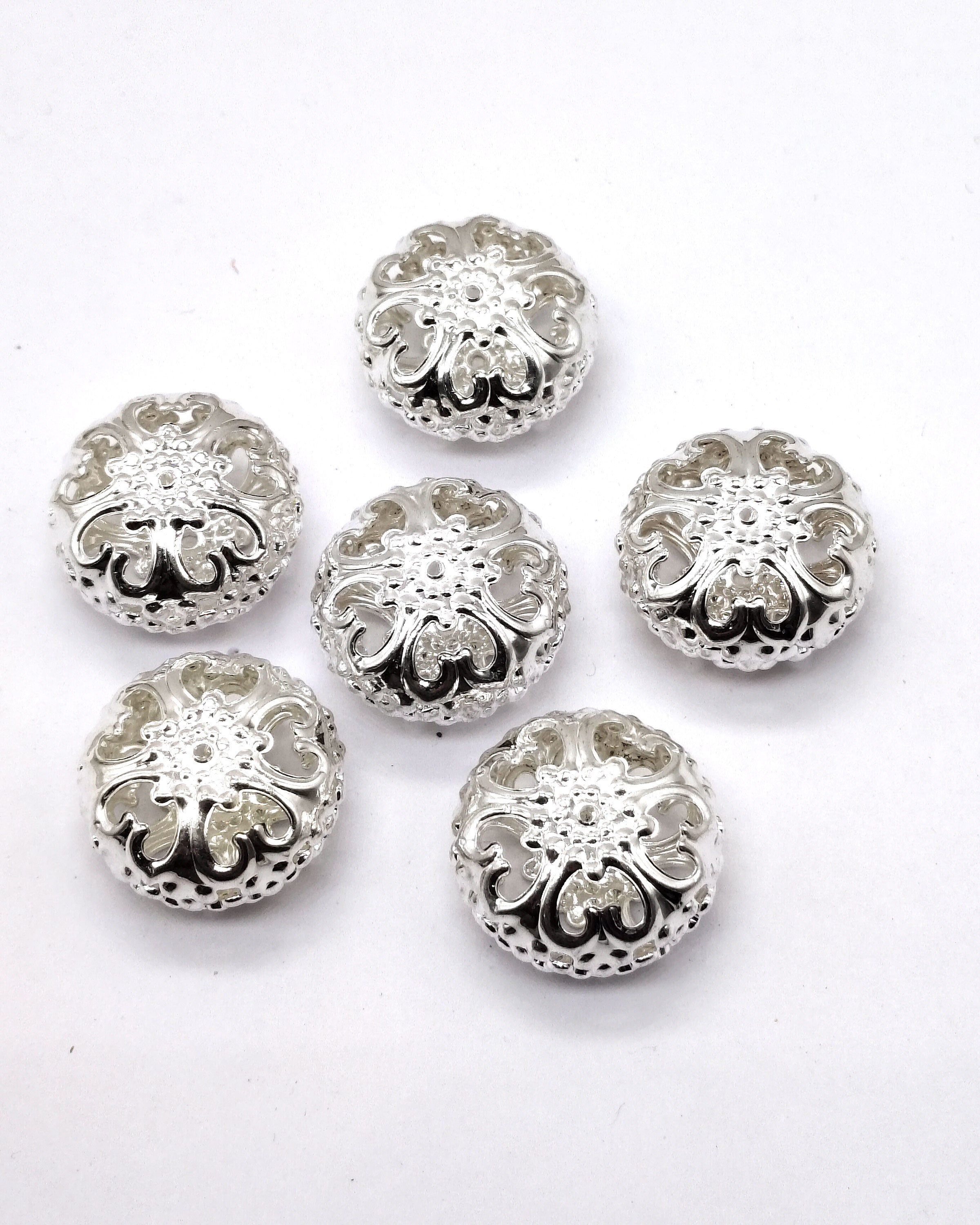Silver Filigree Metal Beads 22MM PER Packet OF 15 PCS - (FB-001).