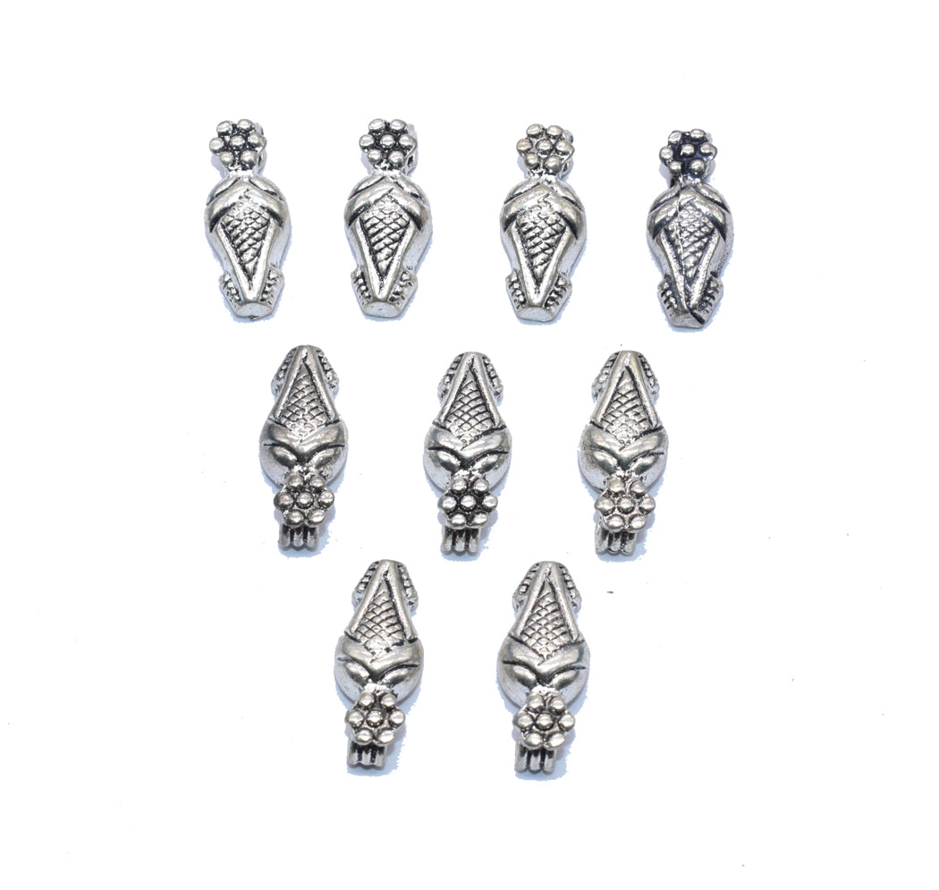 The Silver Kholapuri Beads 20 MM from Beadwaala are intricately designed metal beads that embody the rich cultural heritage of Maharashtra. Inspired by traditional Kolhapuri jewelry, these beads feature detailed oxidized silver patterns, making them ideal for creating statement pieces like necklaces, earrings, or bracelets. With a diameter of 28mm, they offer a bold presence in any jewelry design.