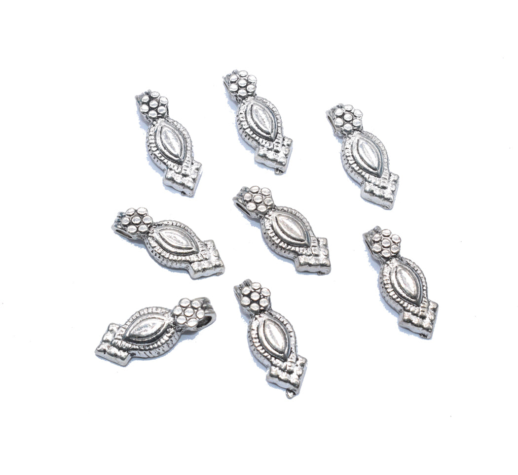 The Silver Kholapuri Beads 22MM from Beadwaala are intricately designed metal beads that embody the rich cultural heritage of Maharashtra. Inspired by traditional Kolhapuri jewelry, these beads feature detailed oxidized silver patterns, making them ideal for creating statement pieces like necklaces, earrings, or bracelets. With a diameter of 28mm, they offer a bold presence in any jewelry design.