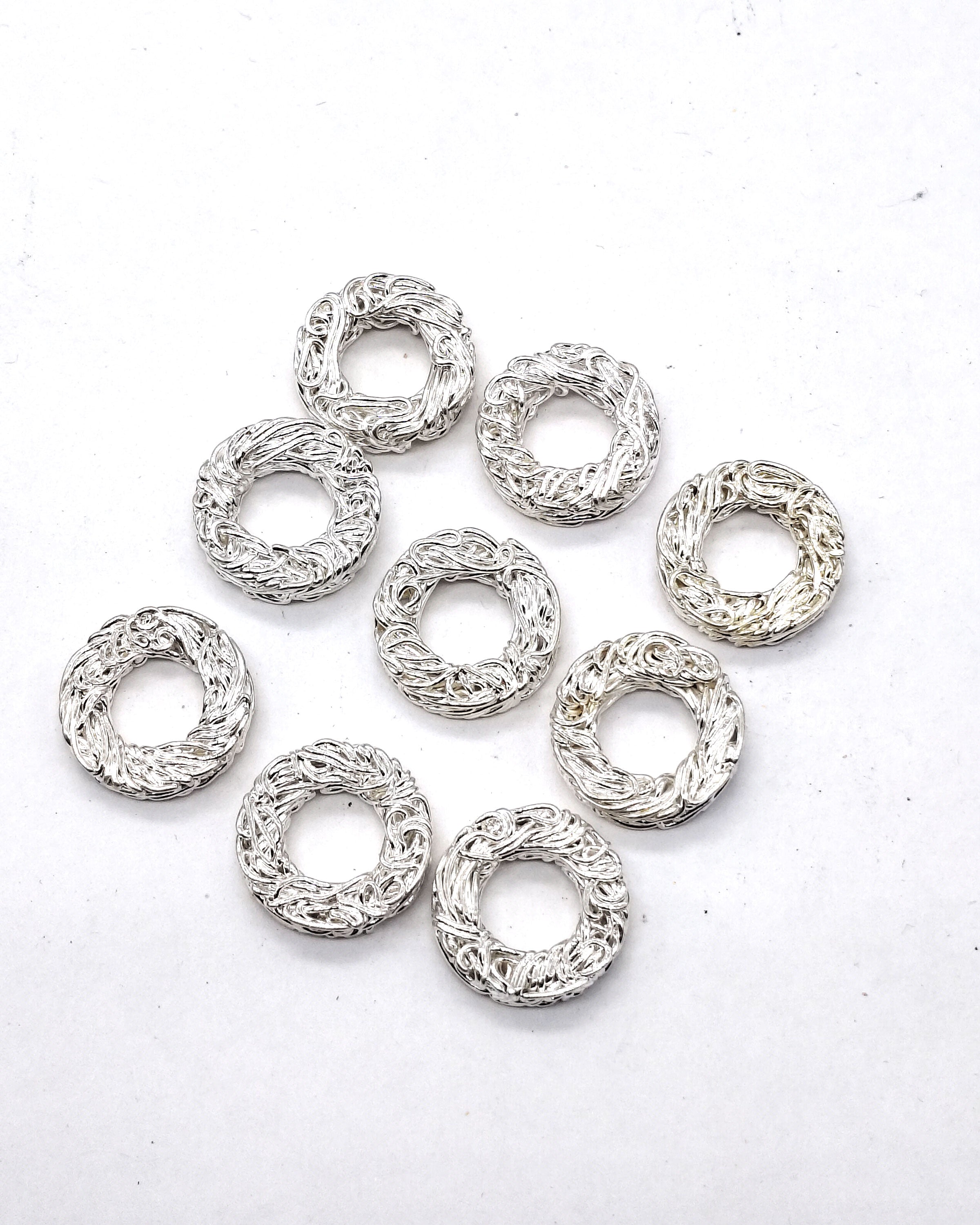 Enhance your jewelry designs with the modern elegance of Beadwaala’s Silver Mesh Circle Shape Beads. Crafted with a detailed mesh texture and a sleek silver finish, these 15MM beads offer a stylish blend of sophistication and uniqueness.
