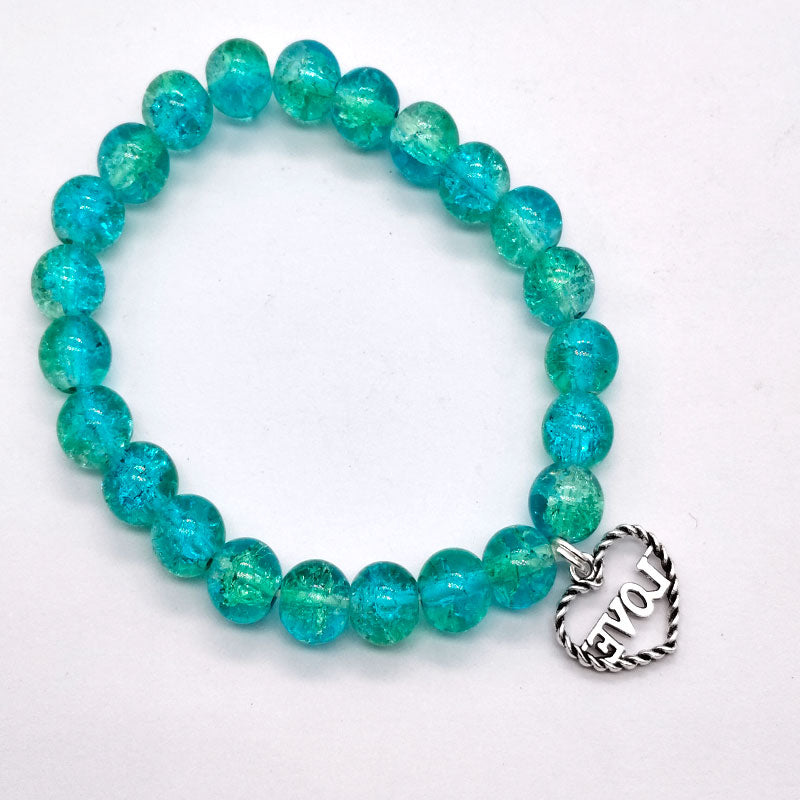 Add a touch of elegance to your look with this Sky Blue Crackle Charms 8MM Bracelet. Featuring vibrant crackle glass beads and delicate silver-tone charms, this bracelet combines charm and color in a stylish, eye-catching design—perfect for everyday wear or special occasions.