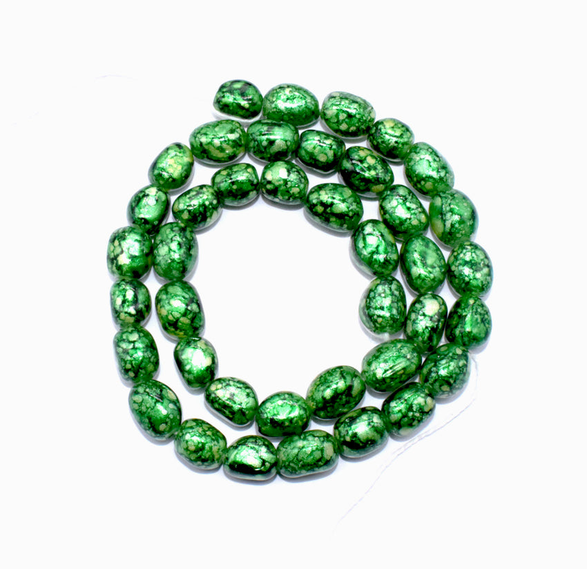 Tumble (Nugget) Painted Glass Beads For Jewelry Making 12X8 MM Per string of 72 Pcs -(PBGB-004)