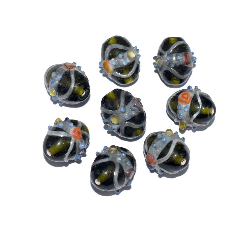 Wedding Cake Beads (Vintage) Handmade Lampwork Glass Beads (Oval), VGM-112