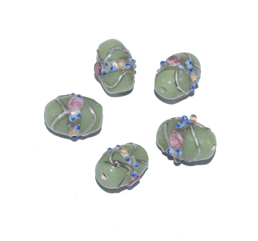 Wedding Cake Beads (Vintage) Handmade Lampwork Glass Beads (Oval), VGM-113