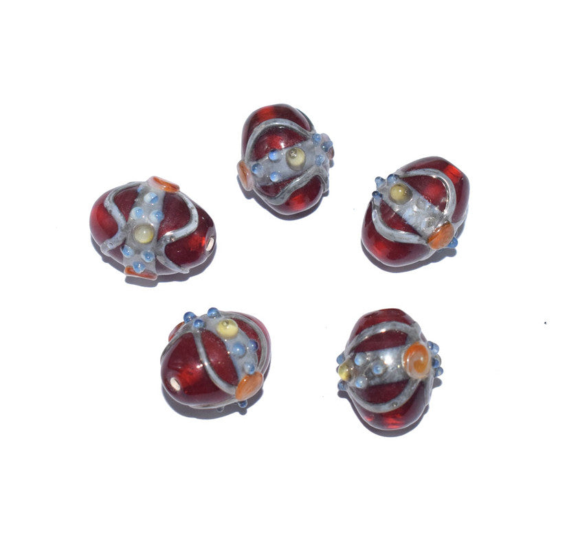 Wedding Cake Beads (Vintage) Handmade Lampwork Glass Beads (Oval), VGM-121